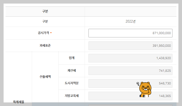 ㉠ 공시지가 (예시 : 871,000,000원)