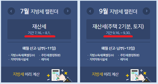 "주택"에 대한 재산세 납부는 7월과 9월, 연간 2회에 걸쳐 납부하게 됩니다. (전체 납부액의 50%씩)